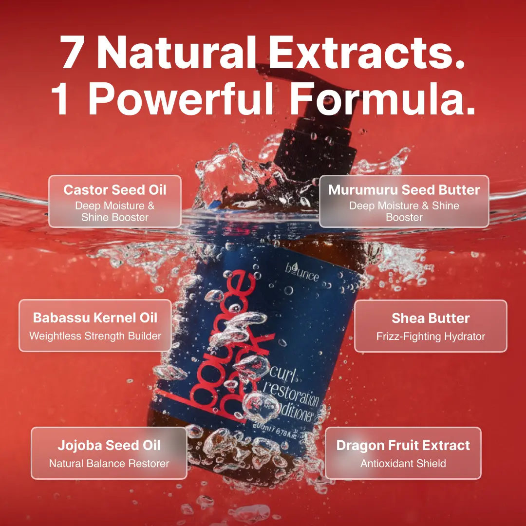 Our Curl Harmony Blend™ restores your hair's natural curl pattern damaged by heat styling and harsh products—deeply hydrating each strand, eliminating frizz, and bringing back effortless bounce and definition.