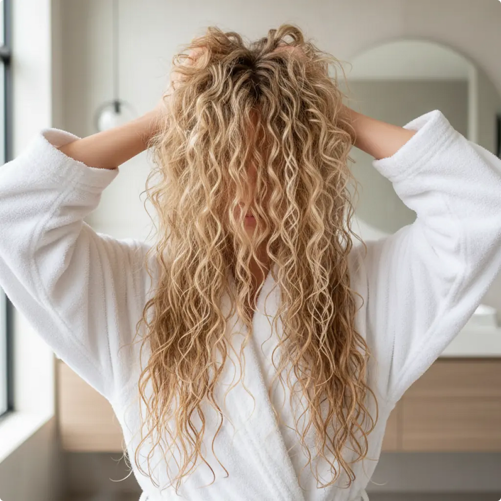 Sleep with your hair in a loose top knot or use medusa clipping techniques to preserve wave structure overnight without creating dents or flattening.